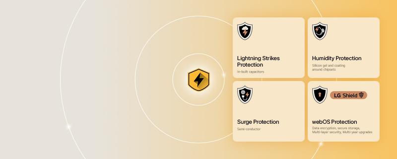 From hardware to software, your LG TV is protected. Built-in capacitors protect against high voltages, including lightning strikes, while semiconductors are engineered with surge protection. Silicon gel and protective coatings shield chipsets from humidity and even your data stays safe and secure with LG Shield.