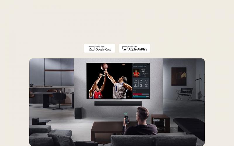 *Picture and sound settings on both screens are the same. *Apple, the Apple logo, Apple TV, AirPlay and HomeKit are trademarks of Apple Inc., registered in the U.S. and other countries. *Support for AirPlay 2, HomeKit, and Google Cast may vary by region, and language.