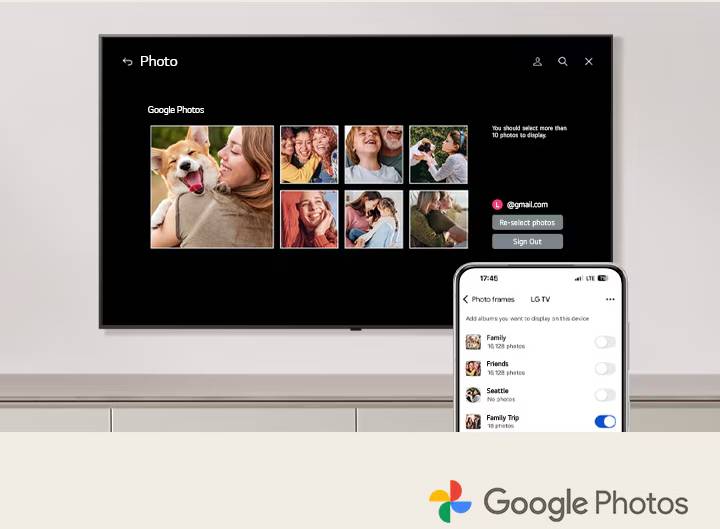 Conveniently connect your Google Photos account to your TV just by using your phone. Effortlessly personalize your space by using content from your own photo library.