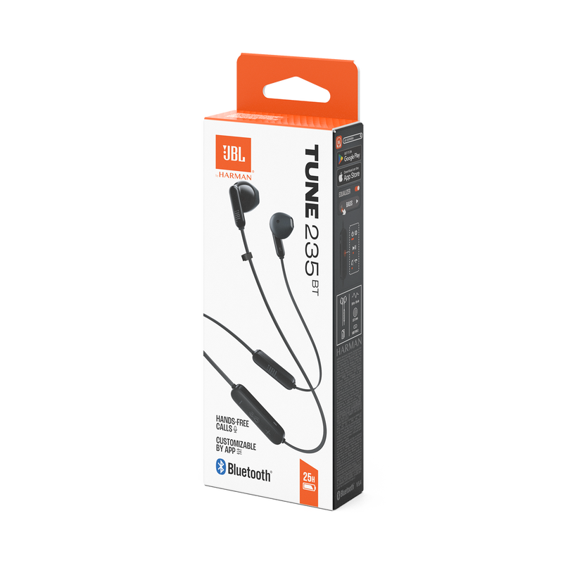 Introducing JBL Tune 235BT wireless earbud headphones with JBL Pure Bass Sound. Thanks to the 25-hour battery life they can wirelessly stream high quality audio and provide hands-free call management. The Tune 235BT feature a pair of 12.5 mm drivers punching serious bass, while the soft, ergonomically shaped earbuds ensure the listening experience remains comfortable for long-listening hours. In addition, a three-button remote with mic on a tangle-free cable lets you control music and calls and access your devices' voice assistant. The multi-point connection allows you to never miss a call, making the JBL Tune 235BT your everyday companion for work, at home and on the go.